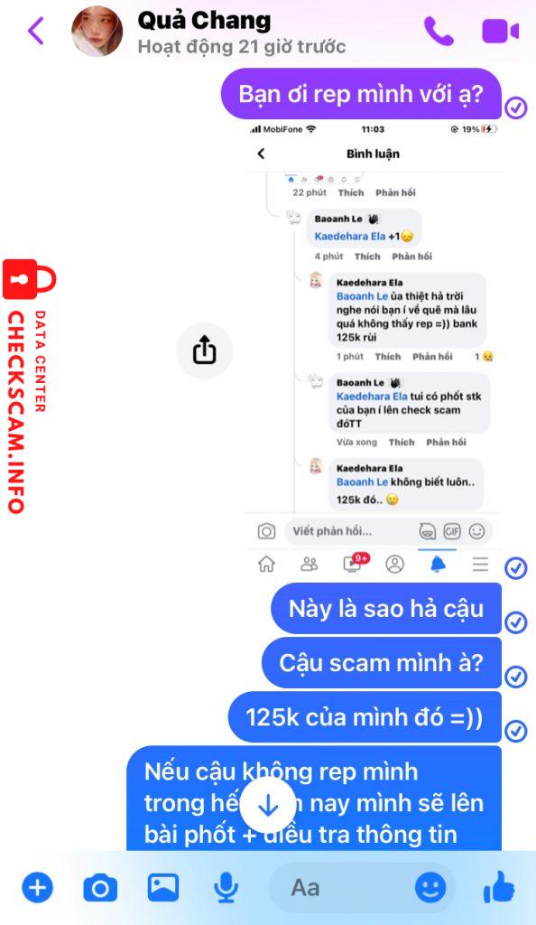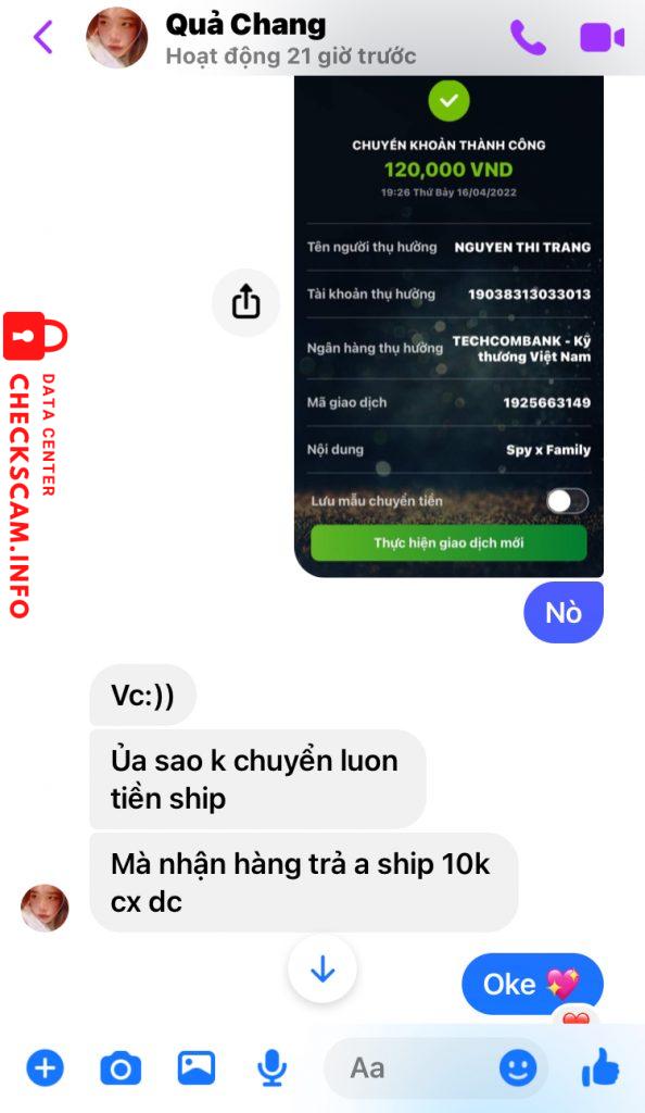 Cảnh báo kẻ lừa đảo: Nguyen Thi Trang Đã báo cáo: November 16, 2024 Thông tin kẻ lừa đảo Họ và tên: Nguyen Thi Trang Cổng thanh toán: Techcombank Tài khoản thanh toán: 19038313033013 Danh mục: Lừa đảo mua bán Nguồn: Checkscam Tệp bằng chứng Mô tả báo cáo Né bạn này ra giùm =))) Bình luận Bình luận của bạn Thêm bình luận Chưa có bình luận nào. Hãy là người đầu tiên chia sẻ kinh nghiệm của bạn với kẻ lừa đảo này.