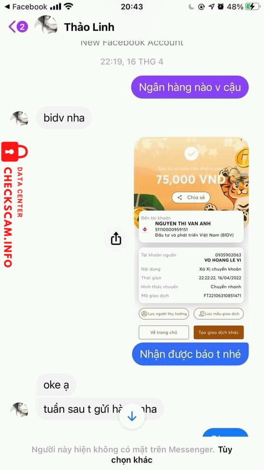 Cảnh báo kẻ lừa đảo: NGUYEN THI VAN ANH