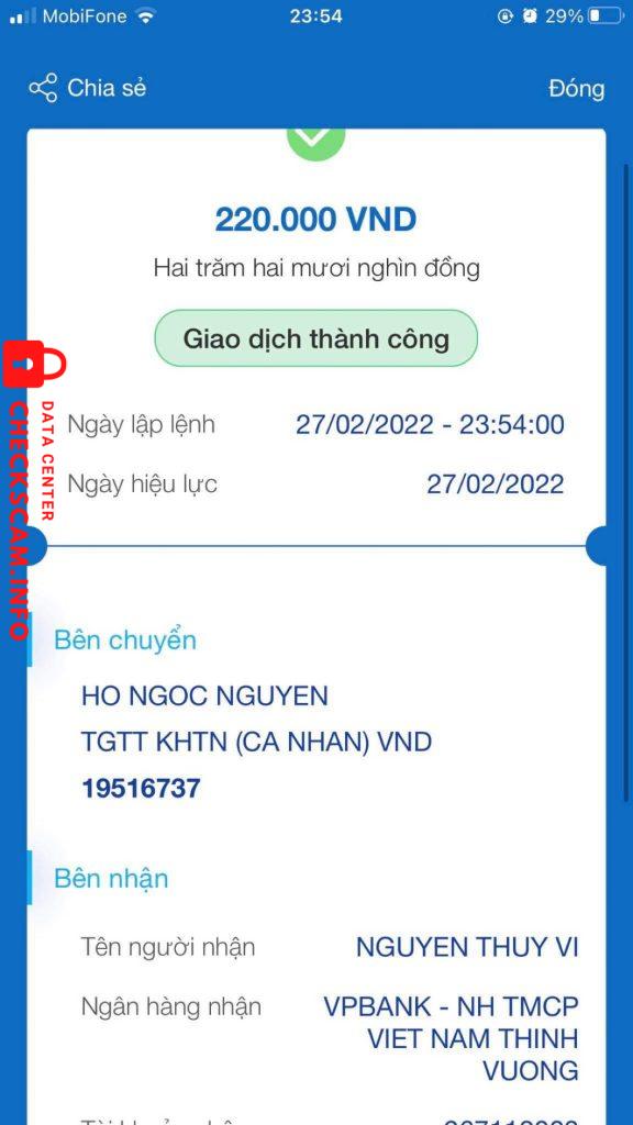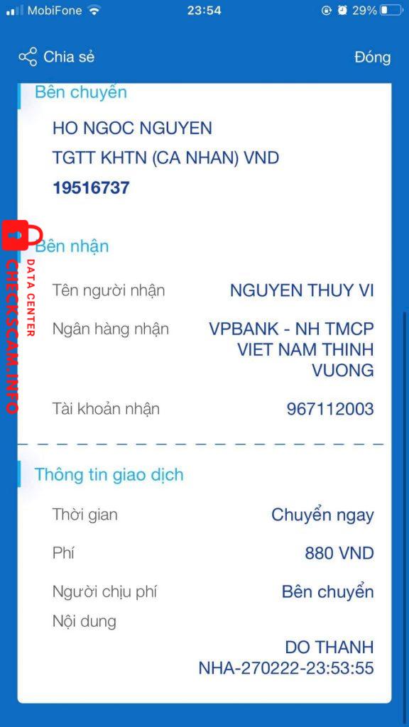 Cảnh báo kẻ lừa đảo: NGUYEN THUY VI