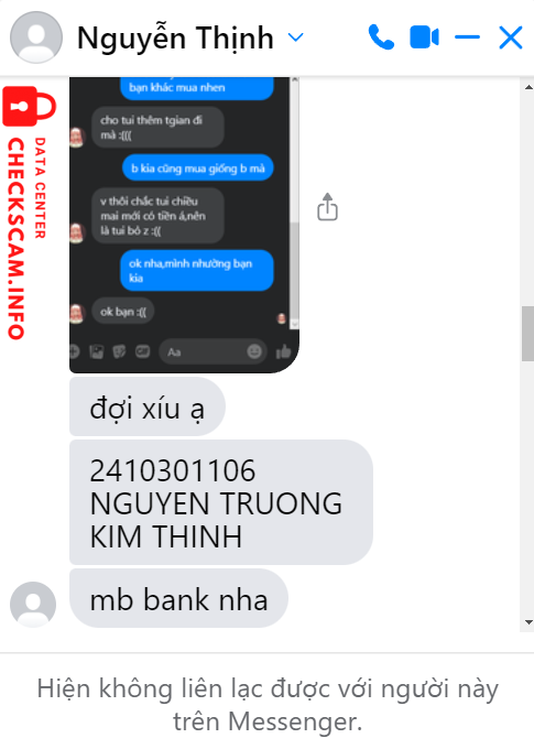 Cảnh báo kẻ lừa đảo: NGUYEN TRUONG KIM THINH Đã báo cáo: November 16, 2024 Thông tin kẻ lừa đảo Họ và tên: NGUYEN TRUONG KIM THINH Cổng thanh toán: MB BANK Tài khoản thanh toán: 2410301106 Danh mục: Lừa đảo mua bán Nguồn: Checkscam Tệp bằng chứng Mô tả báo cáo SCAM PASS MANGA =))))))) Bình luận Bình luận của bạn Thêm bình luận Chưa có bình luận nào. Hãy là người đầu tiên chia sẻ kinh nghiệm của bạn với kẻ lừa đảo này.
