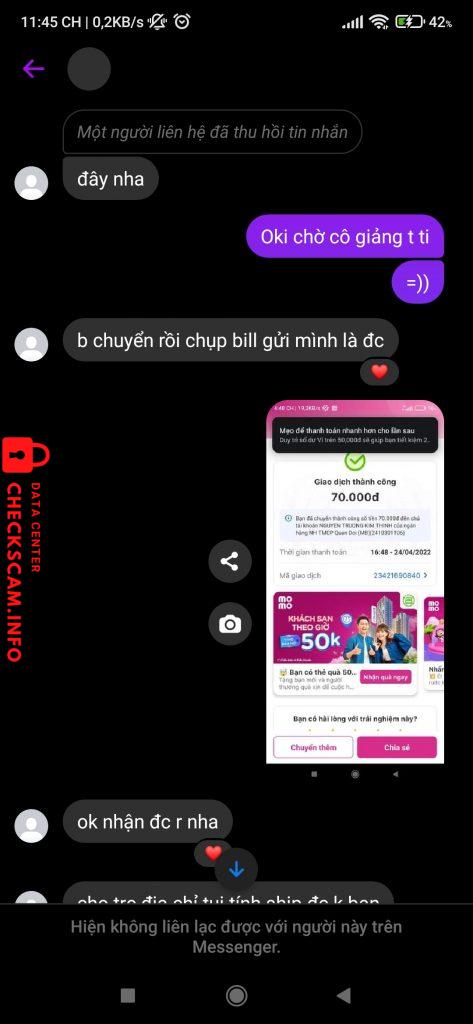 Cảnh báo kẻ lừa đảo: NGUYEN TRUONG KIM THINH Đã báo cáo: November 16, 2024 Thông tin kẻ lừa đảo Họ và tên: NGUYEN TRUONG KIM THINH Cổng thanh toán: MB bank Tài khoản thanh toán: 2410301106 Danh mục: Lừa đảo mua bán Nguồn: Checkscam Tệp bằng chứng Mô tả báo cáo Bình luận Bình luận của bạn Thêm bình luận Chưa có bình luận nào. Hãy là người đầu tiên chia sẻ kinh nghiệm của bạn với kẻ lừa đảo này.