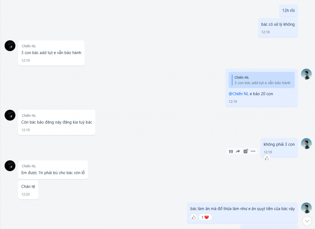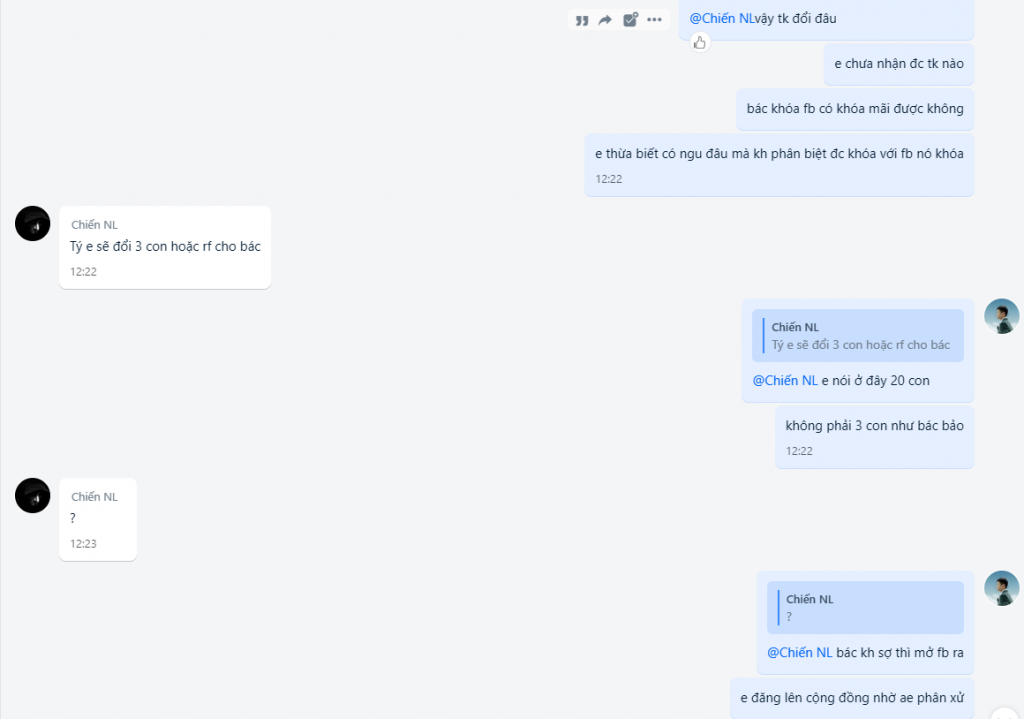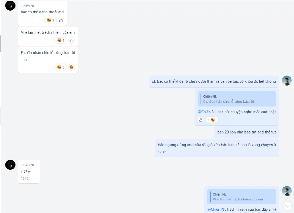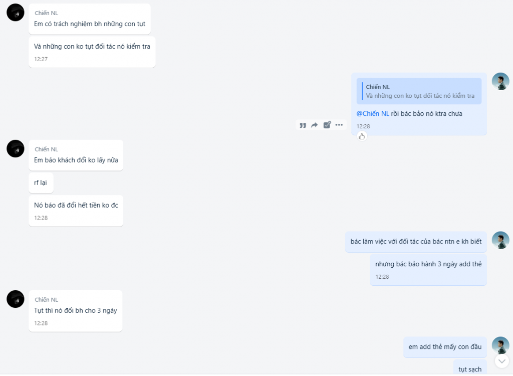 + Ngày 26/5 khách phản hồi tkcn nlm mua từ bác #Chiến add thẻ phát tụt luôn nhắn bác #Chiến bảo hành thì đổ thừa do via này kia .