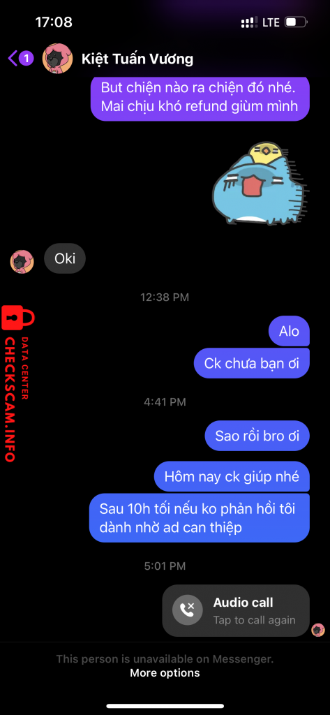 Cảnh báo kẻ lừa đảo: Nguyen Van Hoang Đã báo cáo: November 16, 2024 Thông tin kẻ lừa đảo Họ và tên: Nguyen Van Hoang Cổng thanh toán: Mbbank Tài khoản thanh toán: 0000749703835 Danh mục: Lừa đảo mua bán Nguồn: Checkscam Tệp bằng chứng Mô tả báo cáo Lừa đảo nhận tiền xong khoá tk Bình luận Bình luận của bạn Thêm bình luận Chưa có bình luận nào. Hãy là người đầu tiên chia sẻ kinh nghiệm của bạn với kẻ lừa đảo này.