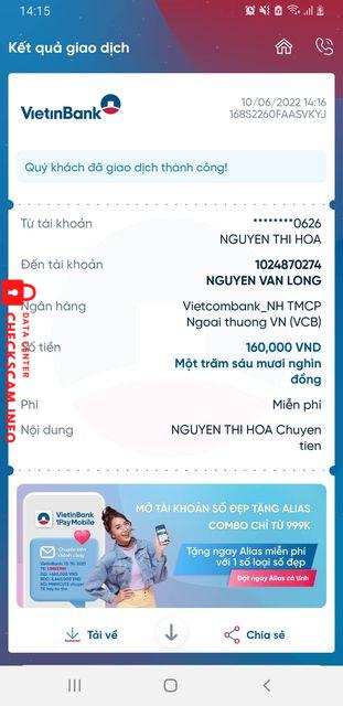 Vietcombank: 1024870274 Nguyễn Văn Long