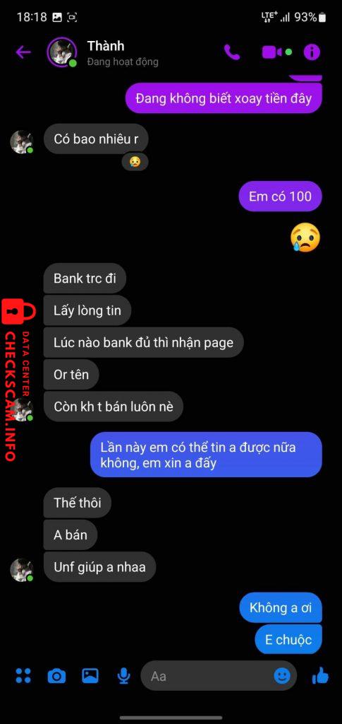 Cảnh báo kẻ lừa đảo: Nguyễn Văn Thành
