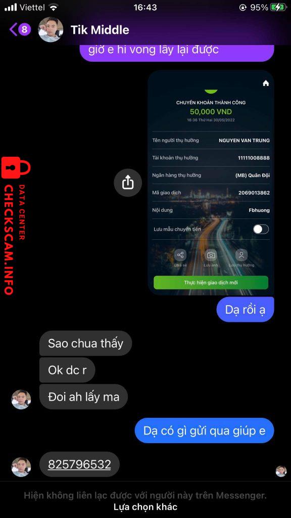 Cảnh báo kẻ lừa đảo: Nguyễn Văn Trung Đã báo cáo: November 16, 2024 Thông tin kẻ lừa đảo Họ và tên: Nguyễn Văn Trung Cổng thanh toán: Mb Bank Tài khoản thanh toán: 11111008888 Danh mục: Lừa đảo mua bán Nguồn: Checkscam Tệp bằng chứng Mô tả báo cáo Nguyễn Văn Trung lừa đảo tiền Facebook Bình luận Bình luận của bạn Thêm bình luận Chưa có bình luận nào. Hãy là người đầu tiên chia sẻ kinh nghiệm của bạn với kẻ lừa đảo này.