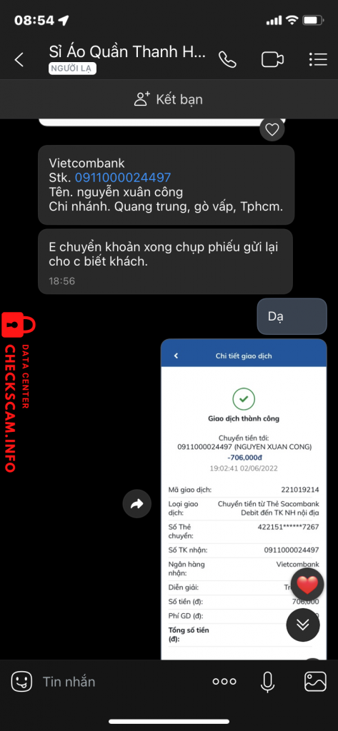 Thông tin kẻ lừa đảo
