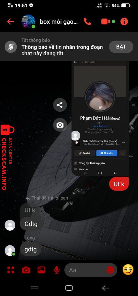 Cảnh báo kẻ lừa đảo: Phạm Đức Hải Đã báo cáo: November 16, 2024 Thông tin kẻ lừa đảo Họ và tên: Phạm Đức Hải Cổng thanh toán: MB Banks Tài khoản thanh toán: 08186087888 Danh mục: Lừa đảo mua bán Nguồn: Checkscam Tệp bằng chứng Mô tả báo cáo Scamer bán ip 5 Không thấy đơn về Hỏi check ut thì Báo rằng scam Web của scam Likesubvn.com Bình luận Bình luận của bạn Thêm bình luận Chưa có bình luận nào. Hãy là người đầu tiên chia sẻ kinh nghiệm của bạn với kẻ lừa đảo này.