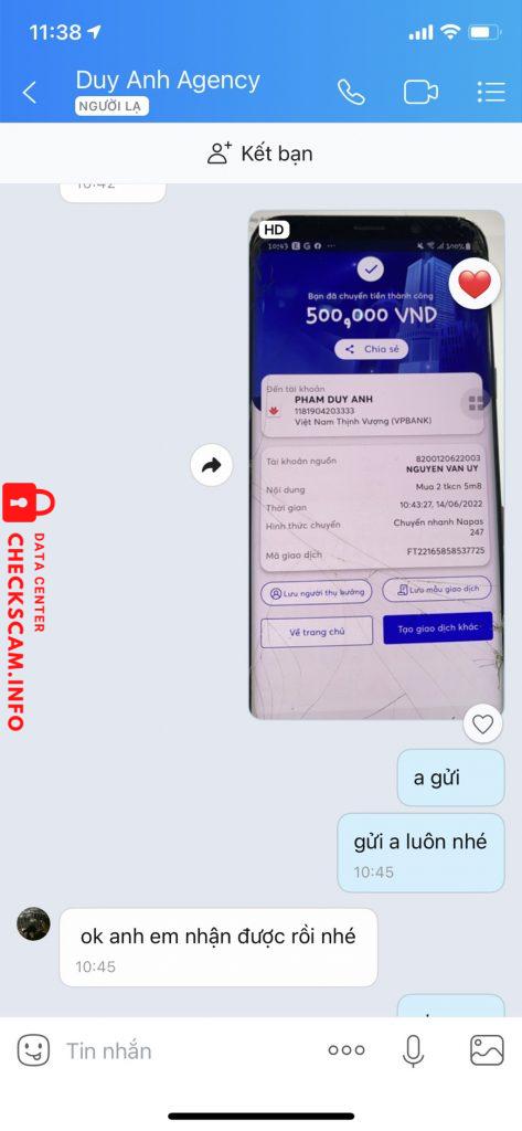 Cảnh báo kẻ lừa đảo: Pham Duy Anh Đã báo cáo: November 16, 2024 Thông tin kẻ lừa đảo Họ và tên: Pham Duy Anh Cổng thanh toán: vp bank Tài khoản thanh toán: 1181904203333 Danh mục: Lừa đảo mua bán Nguồn: Checkscam Tệp bằng chứng Mô tả báo cáo lừa đảo,scam Bình luận Bình luận của bạn Thêm bình luận Chưa có bình luận nào. Hãy là người đầu tiên chia sẻ kinh nghiệm của bạn với kẻ lừa đảo này.