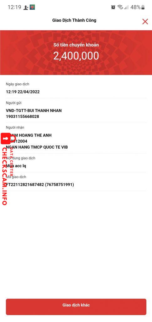 Cảnh báo kẻ lừa đảo: Phạm Hoàng Thế Anh