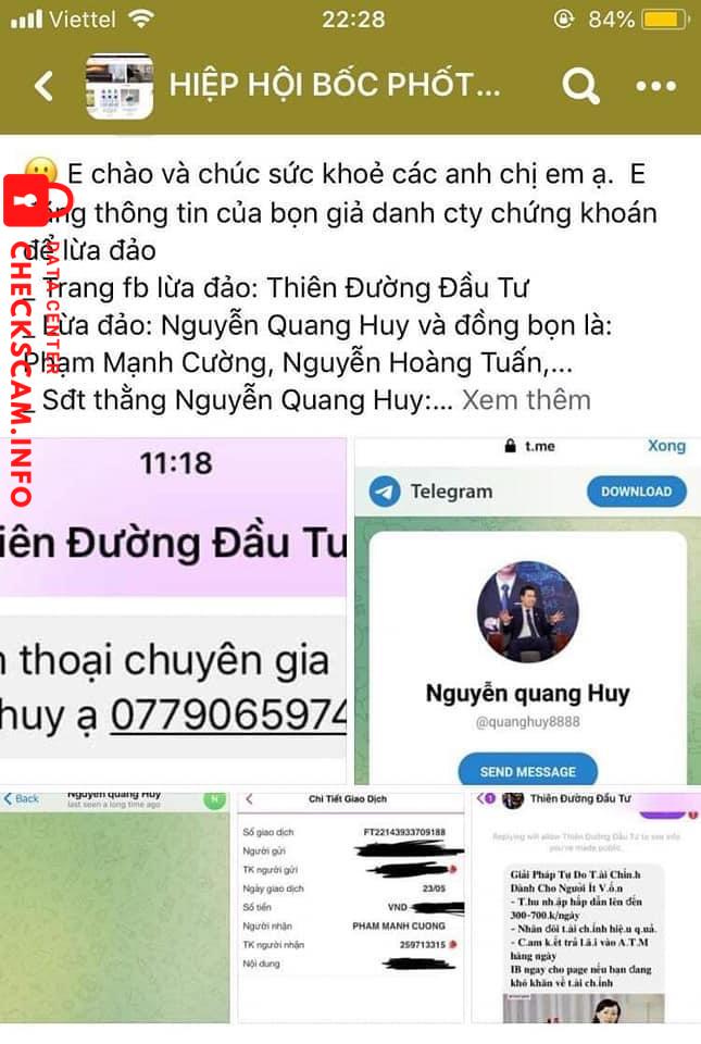 Cảnh báo kẻ lừa đảo: PHAM MANH CUONG