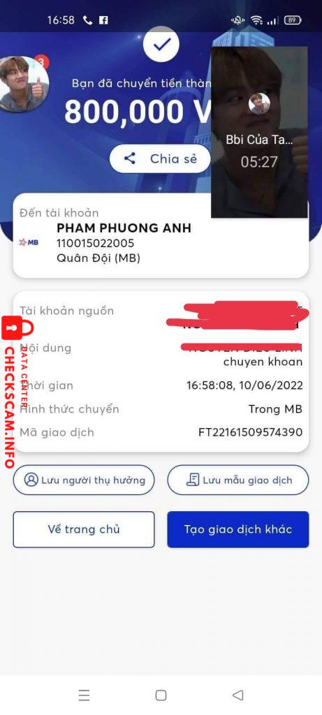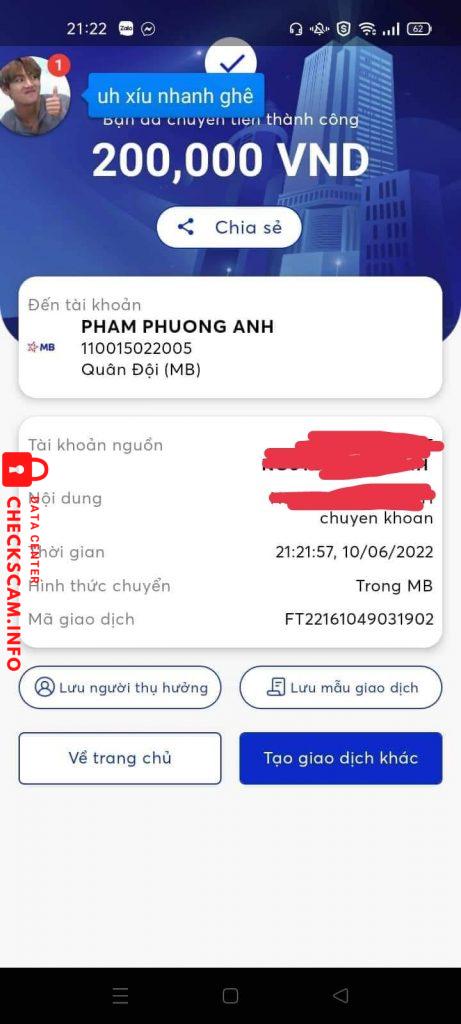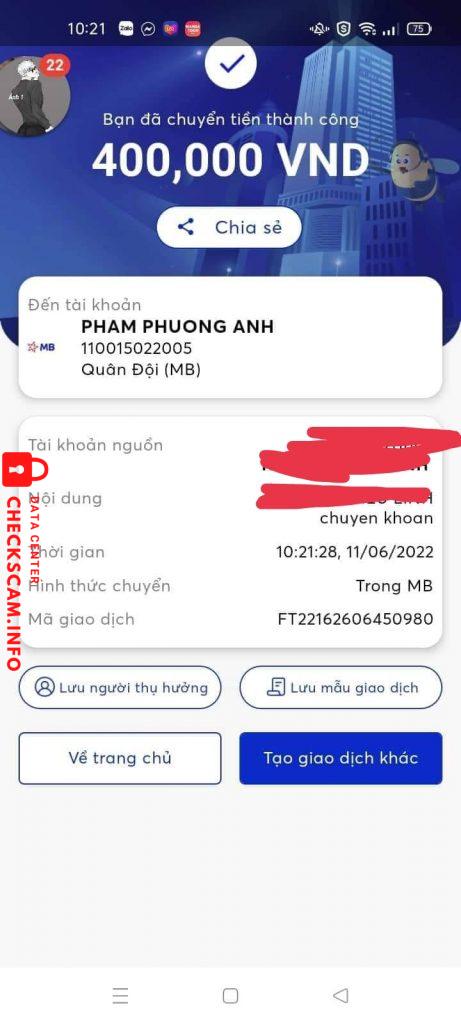 Cảnh báo kẻ lừa đảo: Phạm Phương Anh Đã báo cáo: November 16, 2024 Thông tin kẻ lừa đảo Họ và tên: Phạm Phương Anh Cổng thanh toán: Mb Bank Tài khoản thanh toán: 110015022005 Danh mục: Lừa đảo mua bán Nguồn: Checkscam Tệp bằng chứng Mô tả báo cáo Lừa đảo người ta hơn 2 triệu 1 xong h sủi Bình luận Bình luận của bạn Thêm bình luận Chưa có bình luận nào. Hãy là người đầu tiên chia sẻ kinh nghiệm của bạn với kẻ lừa đảo này.