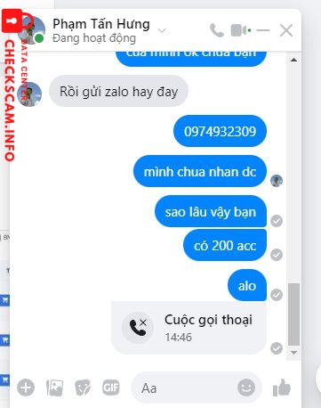 Cảnh báo kẻ lừa đảo: PHẠM TẤN HƯNG Đã báo cáo: November 16, 2024 Thông tin kẻ lừa đảo Họ và tên: PHẠM TẤN HƯNG Cổng thanh toán: TP bank Tài khoản thanh toán: 279371849271 Danh mục: Lừa đảo mua bán Nguồn: Checkscam Tệp bằng chứng Mô tả báo cáo Chuyển tiền mua clone nhưng bùng 300 không gửi acc. Mọi người cẩn thận Bình luận Bình luận của bạn Thêm bình luận Chưa có bình luận nào. Hãy là người đầu tiên chia sẻ kinh nghiệm của bạn với kẻ lừa đảo này.