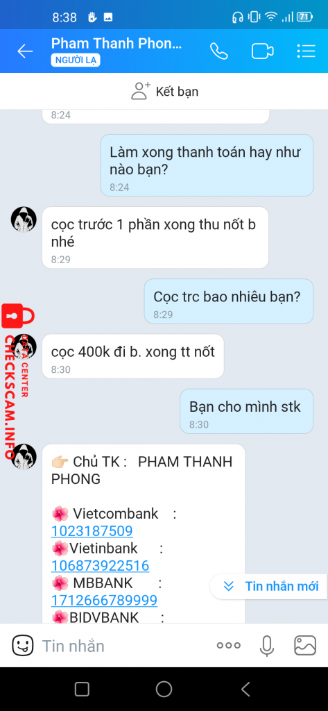 Cảnh báo kẻ lừa đảo: Phạm Thanh Phong