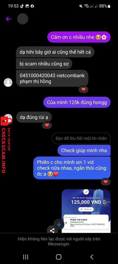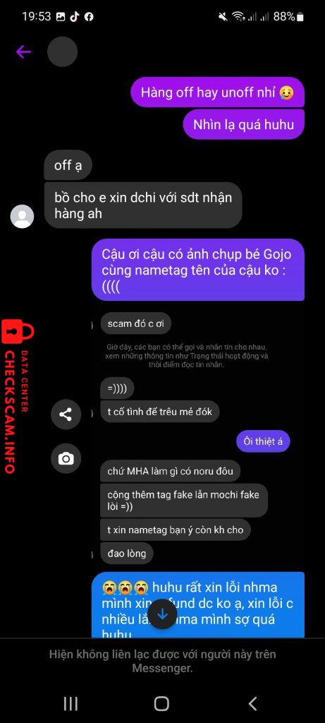 Cảnh báo kẻ lừa đảo: Pham Thi Hong Đã báo cáo: November 16, 2024 Thông tin kẻ lừa đảo Họ và tên: Pham Thi Hong Cổng thanh toán: VIETCOMBANK Tài khoản thanh toán: 0451000420043 Danh mục: Lừa đảo mua bán Nguồn: Checkscam Tệp bằng chứng Mô tả báo cáo Nick fb là Hoài An (mới đổi thành Thiên Trúc) lấy ảnh goods bông MHA và JJK đi lừa đảo với giá 120-125k. Bình luận Bình luận của bạn Thêm bình luận Chưa có bình luận nào. Hãy là người đầu tiên chia sẻ kinh nghiệm của bạn với kẻ lừa đảo này.