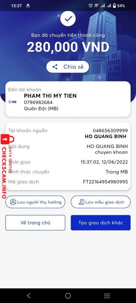 Cảnh báo kẻ lừa đảo: PHAM THI MY TIEN