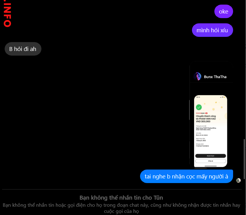 Cảnh báo kẻ lừa đảo: phạm vân hảo Đã báo cáo: November 16, 2024 Thông tin kẻ lừa đảo Họ và tên: phạm vân hảo Cổng thanh toán: ocb Tài khoản thanh toán: 0028100008523002 Danh mục: Lừa đảo mua bán Nguồn: Checkscam Tệp bằng chứng Mô tả báo cáo scam cọc tại nghe airpod pro Bình luận Bình luận của bạn Thêm bình luận Chưa có bình luận nào. Hãy là người đầu tiên chia sẻ kinh nghiệm của bạn với kẻ lừa đảo này.