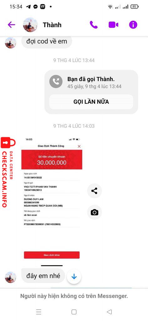 Cảnh báo kẻ lừa đảo: pham van thanh