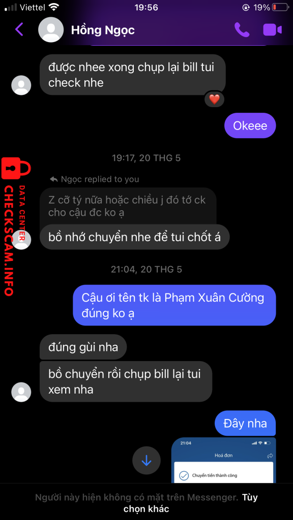 Cảnh báo kẻ lừa đảo: Phạm Xuân Cường Đã báo cáo: November 16, 2024 Thông tin kẻ lừa đảo Họ và tên: Phạm Xuân Cường Cổng thanh toán: Techcombank Tài khoản thanh toán: 19027992313011 Danh mục: Lừa đảo mua bán Nguồn: Checkscam Tệp bằng chứng Mô tả báo cáo Bình luận Bình luận của bạn Thêm bình luận Chưa có bình luận nào. Hãy là người đầu tiên chia sẻ kinh nghiệm của bạn với kẻ lừa đảo này.