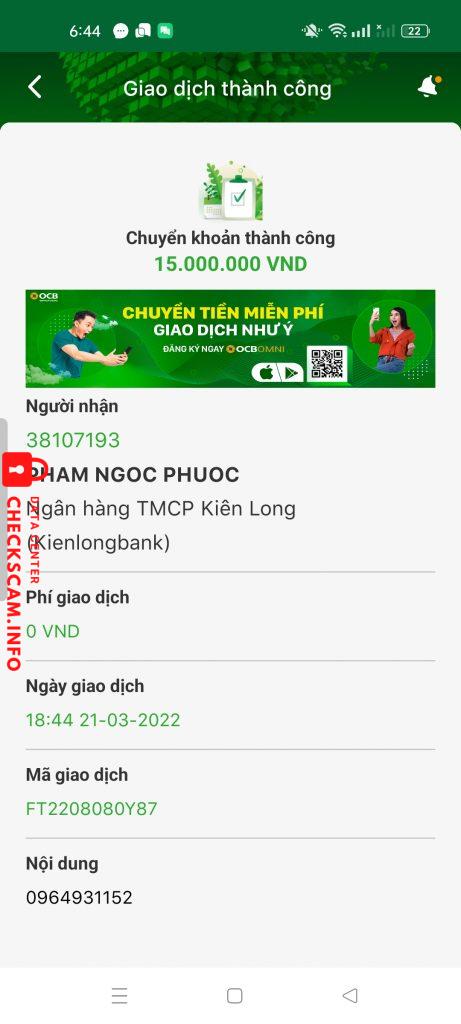 Cảnh báo kẻ lừa đảo: Phm ngoc phuoc