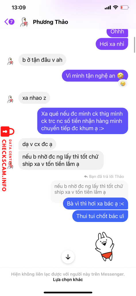 Cảnh báo kẻ lừa đảo: Phương thảo Đã báo cáo: November 16, 2024 Thông tin kẻ lừa đảo Họ và tên: Phương thảo Cổng thanh toán: 103870644118 Danh mục: Lừa đảo mua bán Nguồn: Checkscam Tệp bằng chứng Mô tả báo cáo Thanh niên scam nói ngon noi ngọt Khi lấy đc hết tiền bắt fdaauf gỡ hết tin nhắn và hặn Bình luận Bình luận của bạn Thêm bình luận Chưa có bình luận nào. Hãy là người đầu tiên chia sẻ kinh nghiệm của bạn với kẻ lừa đảo này.
