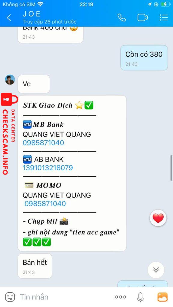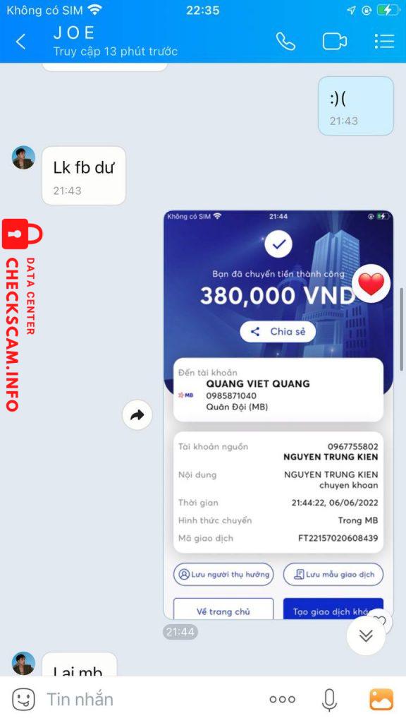 Cảnh báo kẻ lừa đảo: Quang Viet Quang