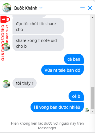 Cảnh báo kẻ lừa đảo: Quốc Khánh Đã báo cáo: November 16, 2024 Thông tin kẻ lừa đảo Họ và tên: Quốc Khánh Cổng thanh toán: Vietinbank Tài khoản thanh toán: 102875653541 Danh mục: Lừa đảo mua bán Nguồn: Checkscam Tệp bằng chứng Mô tả báo cáo Scam chính hiệu. Chuyển tiền chặn luôn Bình luận Bình luận của bạn Thêm bình luận Chưa có bình luận nào. Hãy là người đầu tiên chia sẻ kinh nghiệm của bạn với kẻ lừa đảo này.