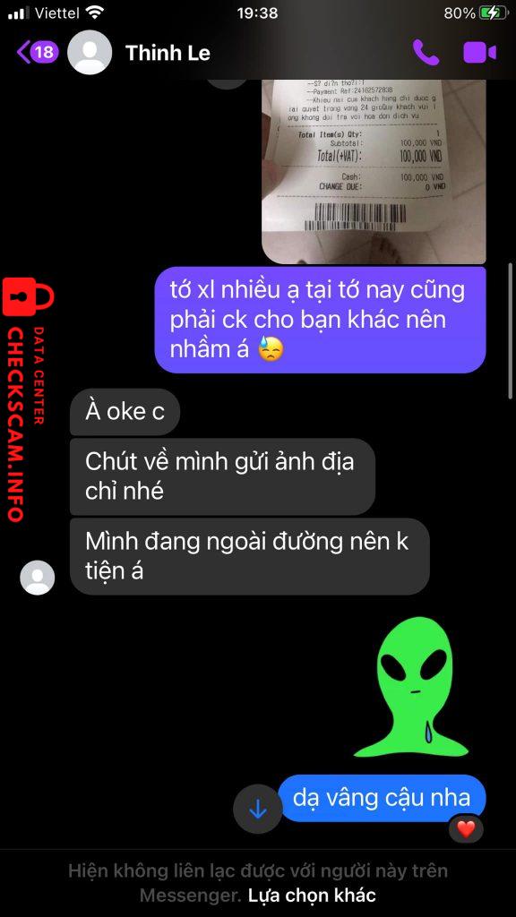 Cảnh báo kẻ lừa đảo: Thinh Le Đã báo cáo: November 16, 2024 Thông tin kẻ lừa đảo Họ và tên: Thinh Le Cổng thanh toán: MoMo Tài khoản thanh toán: 0852963759 Danh mục: Lừa đảo mua bán Nguồn: Checkscam Tệp bằng chứng Mô tả báo cáo đây là tài khoản momo, sau khi nhận tiền 100k thì đã block người giao dịch Bình luận Bình luận của bạn Thêm bình luận Chưa có bình luận nào. Hãy là người đầu tiên chia sẻ kinh nghiệm của bạn với kẻ lừa đảo này.