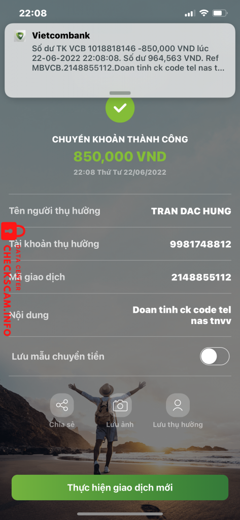 Cảnh báo kẻ lừa đảo: Tran Dac Hung Đã báo cáo: November 16, 2024 Thông tin kẻ lừa đảo Họ và tên: Tran Dac Hung Cổng thanh toán: Vietcombank Tài khoản thanh toán: 9981748812 Danh mục: Lừa đảo mua bán Nguồn: Checkscam Tệp bằng chứng Mô tả báo cáo Mua bán code garena lừa đảo xong block , mọi người nên né kẻo bị lừa giống mình Bình luận Bình luận của bạn Thêm bình luận Chưa có bình luận nào. Hãy là người đầu tiên chia sẻ kinh nghiệm của bạn với kẻ lừa đảo này.