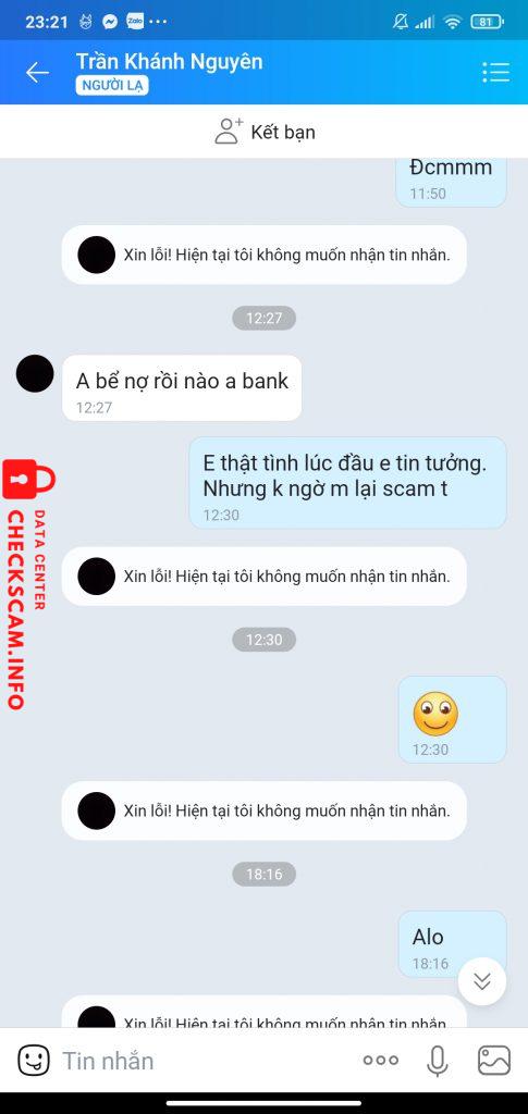 Cảnh báo kẻ lừa đảo: TRAN KHANH NGUYEN