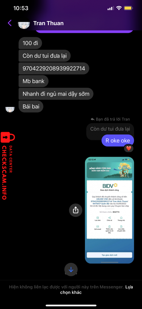 Cảnh báo kẻ lừa đảo: Tran Minh Thuan