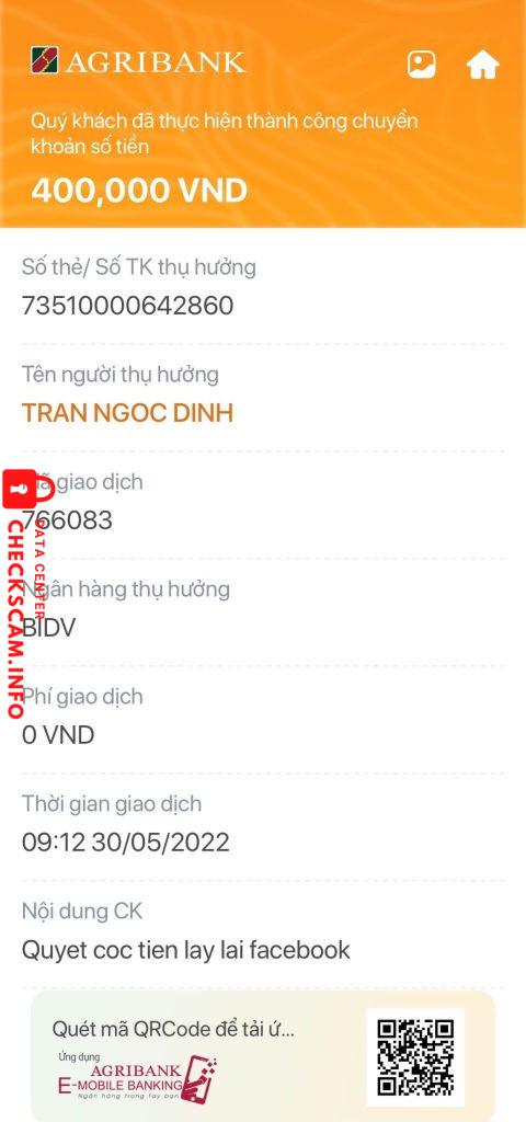 Cảnh báo kẻ lừa đảo: TRAN NGOC DINH
