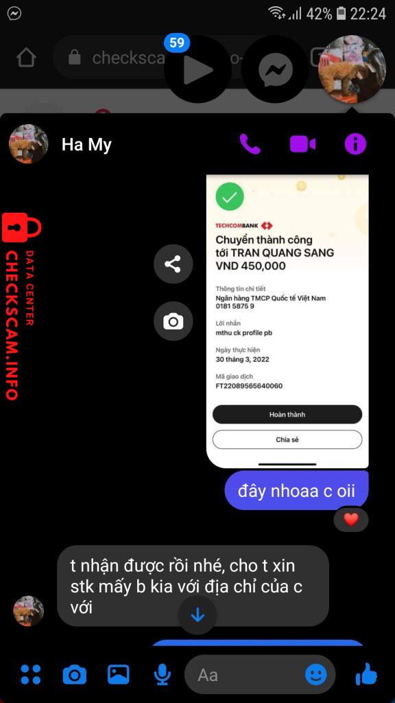 Cảnh báo kẻ lừa đảo: Trần Quang Sang Đã báo cáo: November 16, 2024 Thông tin kẻ lừa đảo Họ và tên: Trần Quang Sang Cổng thanh toán: VIB Tài khoản thanh toán: 018158759 Danh mục: Lừa đảo mua bán Nguồn: Checkscam Tệp bằng chứng Mô tả báo cáo Bình luận Bình luận của bạn Thêm bình luận Chưa có bình luận nào. Hãy là người đầu tiên chia sẻ kinh nghiệm của bạn với kẻ lừa đảo này.