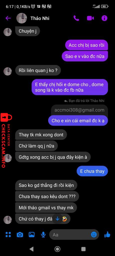 Cảnh báo kẻ lừa đảo: Trần thảo nhi Đã báo cáo: November 16, 2024 Thông tin kẻ lừa đảo Họ và tên: Trần thảo nhi Cổng thanh toán: Vietcombank Tài khoản thanh toán: 8921474356612 Danh mục: Lừa đảo mua bán Nguồn: Checkscam Tệp bằng chứng Mô tả báo cáo Gd song lấy lại acc , xin lại thì phải thêm 1tr ,lúc gd bằng thecaosieure gd song xóa luôn , nên k check đc , ae nên cần thận Bình luận Bình luận của bạn Thêm bình luận Chưa có bình luận nào. Hãy là người đầu tiên chia sẻ kinh nghiệm của bạn với kẻ lừa đảo này.