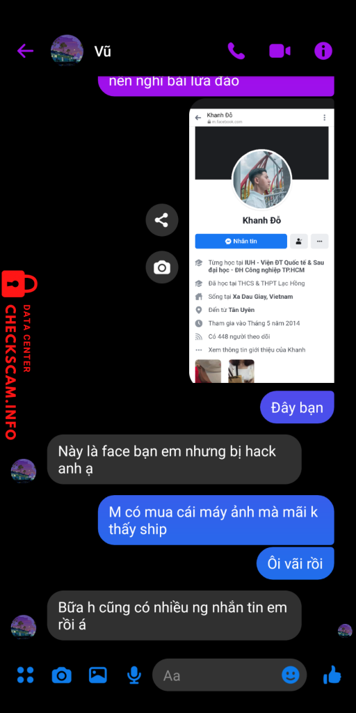 Cảnh báo kẻ lừa đảo: Tran Thi Hong Linh Đã báo cáo: November 16, 2024 Thông tin kẻ lừa đảo Họ và tên: Tran Thi Hong Linh Cổng thanh toán: MBBank Tài khoản thanh toán: 0848115568888 Danh mục: Lừa đảo mua bán Nguồn: Checkscam Tệp bằng chứng Mô tả báo cáo Lừa đảo bán máy ảnh, người mua đặt cọc xong người bán mất hút Bình luận Bình luận của bạn Thêm bình luận Chưa có bình luận nào. Hãy là người đầu tiên chia sẻ kinh nghiệm của bạn với kẻ lừa đảo này.