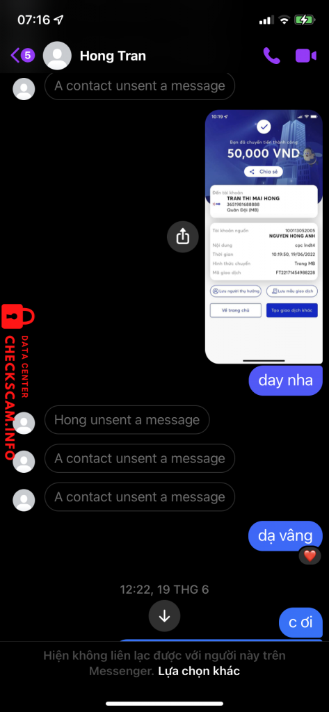 Cảnh báo kẻ lừa đảo: TRAN THI MAI HONG