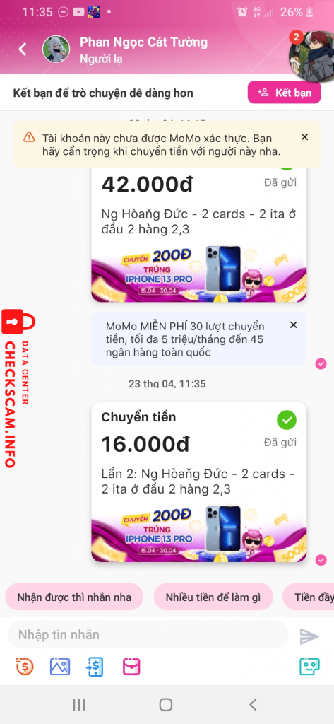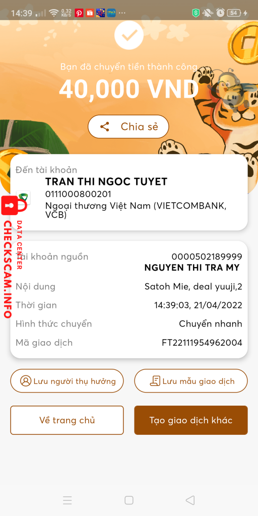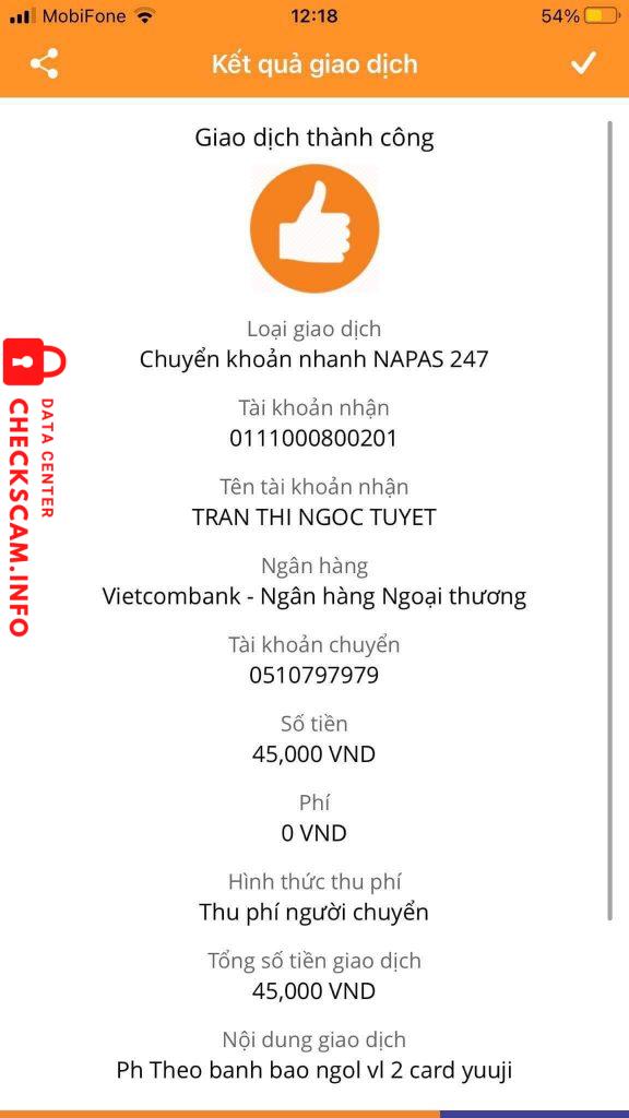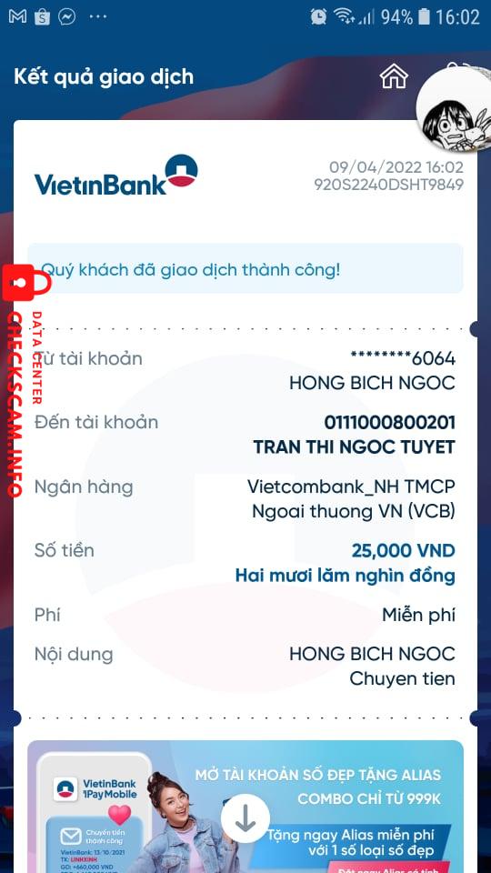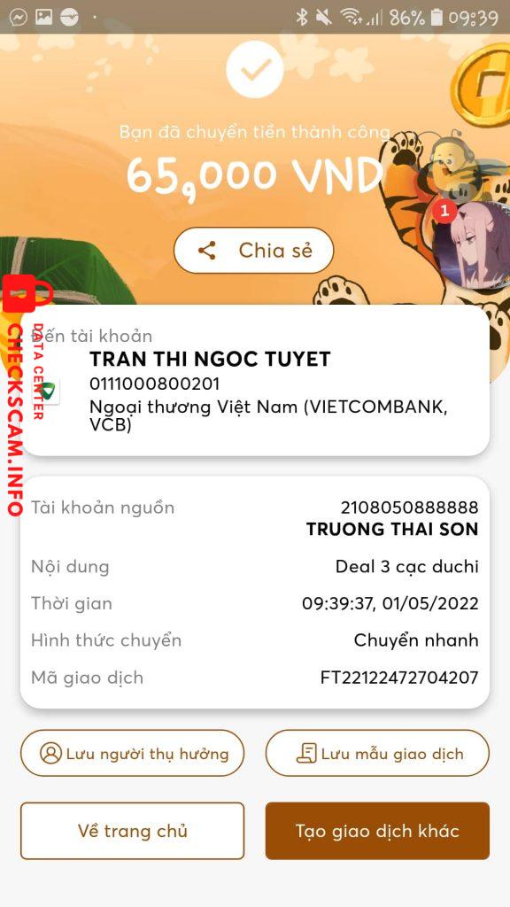 Cảnh báo kẻ lừa đảo: Tran Thi Ngoc Tuyet