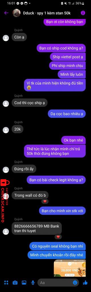 Cảnh báo kẻ lừa đảo: Tran thi tuyet Đã báo cáo: November 16, 2024 Thông tin kẻ lừa đảo Họ và tên: Tran thi tuyet Cổng thanh toán: MB bank Tài khoản thanh toán: 8826666656789 Danh mục: Lừa đảo mua bán Nguồn: Checkscam Tệp bằng chứng Mô tả báo cáo Hoạt động ở nhóm truyện tranh Bình luận Bình luận của bạn Thêm bình luận Chưa có bình luận nào. Hãy là người đầu tiên chia sẻ kinh nghiệm của bạn với kẻ lừa đảo này.