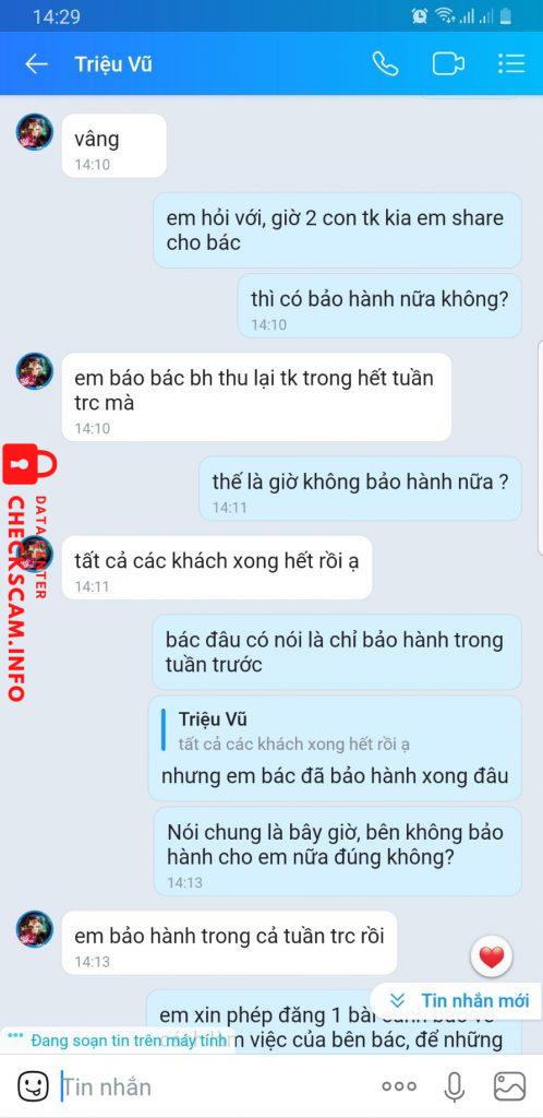 Thanh niên làm việc lươn khươn, bán tài khoản 1m1 bao lên 5m8 mà 1 tuần không lên. Đến lúc kêu bảo hành thì bắt share tài khoản để check, bảo gửi via cho check thì không chịu. Đến khi via về share được rồi thì bảo là bh xong hết từ tuần trước rồi không chịu bảo hành 🙂