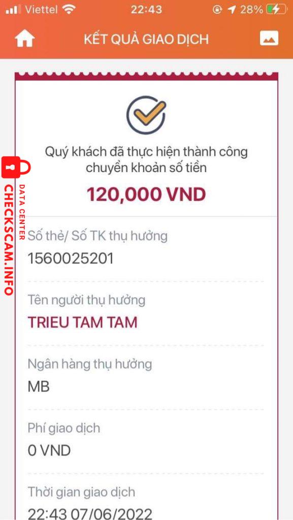 Cảnh báo kẻ lừa đảo: Trieu Tam Tam Đã báo cáo: November 16, 2024 Thông tin kẻ lừa đảo Họ và tên: Trieu Tam Tam Cổng thanh toán: MB bạn Tài khoản thanh toán: 1560025201 Danh mục: Lừa đảo mua bán Nguồn: Checkscam Tệp bằng chứng Mô tả báo cáo Chuyển khoản xong liền block bao giờ ko liên lạc đòi tiền đc Bình luận Bình luận của bạn Thêm bình luận Chưa có bình luận nào. Hãy là người đầu tiên chia sẻ kinh nghiệm của bạn với kẻ lừa đảo này.