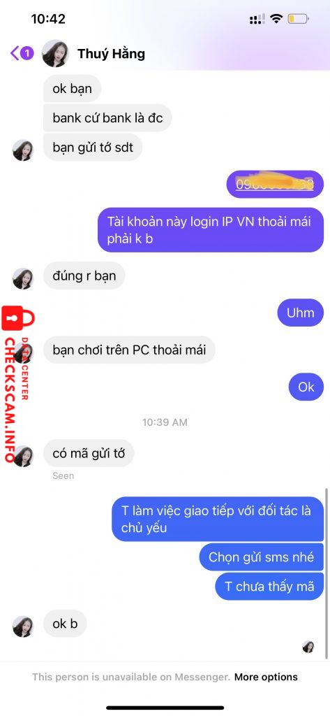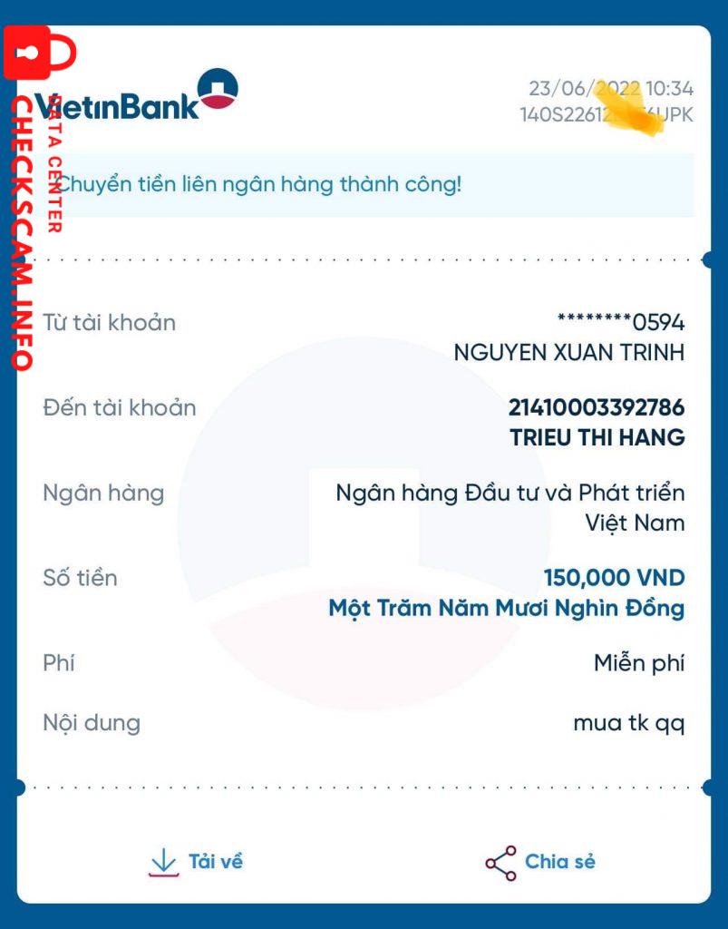 Cảnh báo kẻ lừa đảo: Triệu Thị Hằng Đã báo cáo: November 16, 2024 Thông tin kẻ lừa đảo Họ và tên: Triệu Thị Hằng Cổng thanh toán: BIDV Tài khoản thanh toán: 21410003392786 Danh mục: Lừa đảo mua bán Nguồn: Checkscam Tệp bằng chứng Mô tả báo cáo Nhận tiền xong chặn facebook , bán tk QQ Bình luận Bình luận của bạn Thêm bình luận Chưa có bình luận nào. Hãy là người đầu tiên chia sẻ kinh nghiệm của bạn với kẻ lừa đảo này.