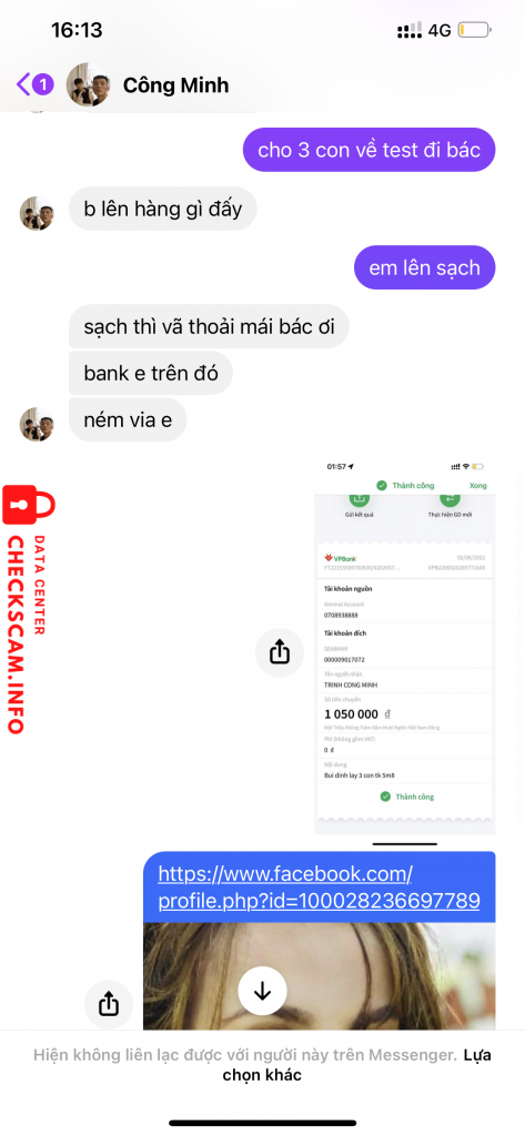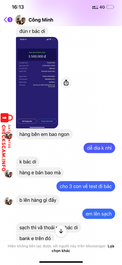 Cảnh báo kẻ lừa đảo: Trịnh Công Minh Đã báo cáo: November 16, 2024 Thông tin kẻ lừa đảo Họ và tên: Trịnh Công Minh Cổng thanh toán: SeaBank Tài khoản thanh toán: 000009017072 Danh mục: Lừa đảo mua bán Nguồn: Checkscam Tệp bằng chứng Mô tả báo cáo Lừa đảo bán tkqc limit 5m8 Bình luận Bình luận của bạn Thêm bình luận Chưa có bình luận nào. Hãy là người đầu tiên chia sẻ kinh nghiệm của bạn với kẻ lừa đảo này.