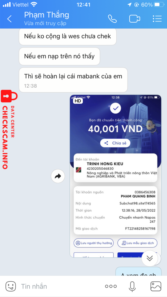 Cảnh báo kẻ lừa đảo: Trinh Hong Kieu