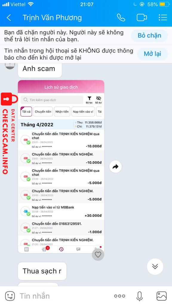 Cảnh báo kẻ lừa đảo: Trịnh Văn Phương