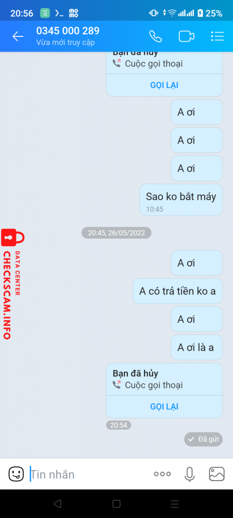 Cảnh báo kẻ lừa đảo: Trung Đã báo cáo: November 16, 2024 Thông tin kẻ lừa đảo Họ và tên: Trung Số điện thoại: 0345000289 Cổng thanh toán: Momo Tài khoản thanh toán: 0345000289 Danh mục: Lừa đảo mua bán Nguồn: Checkscam Tệp bằng chứng Mô tả báo cáo Scam của e 100k mn đừng để bị lừa Bình luận Bình luận của bạn Thêm bình luận Chưa có bình luận nào. Hãy là người đầu tiên chia sẻ kinh nghiệm của bạn với kẻ lừa đảo này.