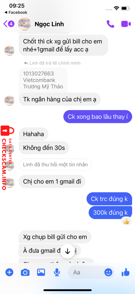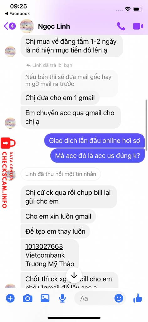 Cảnh báo kẻ lừa đảo: Truong My Thao Đã báo cáo: November 16, 2024 Thông tin kẻ lừa đảo Họ và tên: Truong My Thao Cổng thanh toán: Vietcombank Tài khoản thanh toán: 1013027663 Danh mục: Lừa đảo mua bán Nguồn: Checkscam Tệp bằng chứng Mô tả báo cáo Scam lừa đảo, chuyển tiền rồi block Bình luận Bình luận của bạn Thêm bình luận Chưa có bình luận nào. Hãy là người đầu tiên chia sẻ kinh nghiệm của bạn với kẻ lừa đảo này.