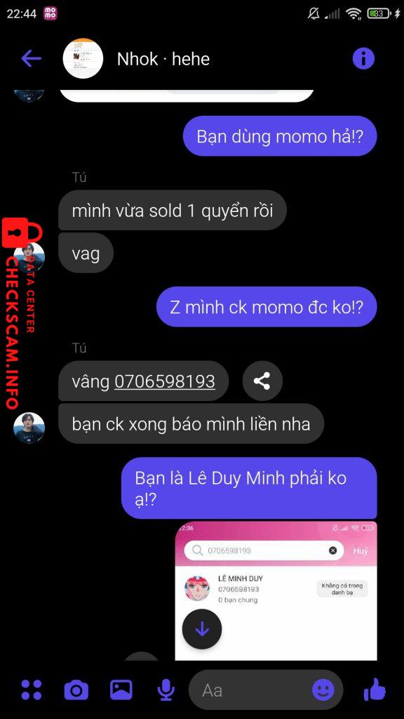 Cảnh báo kẻ lừa đảo: Tú Hưng (momo Lê Minh Duy)