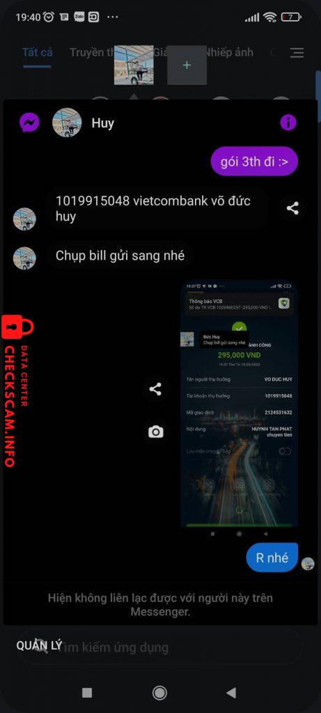 Cảnh báo kẻ lừa đảo: VO DUC HUY Đã báo cáo: November 16, 2024 Thông tin kẻ lừa đảo Họ và tên: VO DUC HUY Cổng thanh toán: Vietcombank Tài khoản thanh toán: 1019915048 Danh mục: Lừa đảo mua bán Nguồn: Checkscam Tệp bằng chứng Mô tả báo cáo Lừa đảo qua phương thức mua bán tài khoản game Bình luận Bình luận của bạn Thêm bình luận Chưa có bình luận nào. Hãy là người đầu tiên chia sẻ kinh nghiệm của bạn với kẻ lừa đảo này.