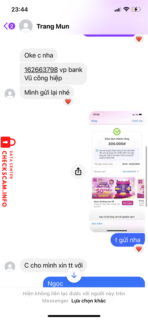 Cảnh báo kẻ lừa đảo: Vu Cong Hiep