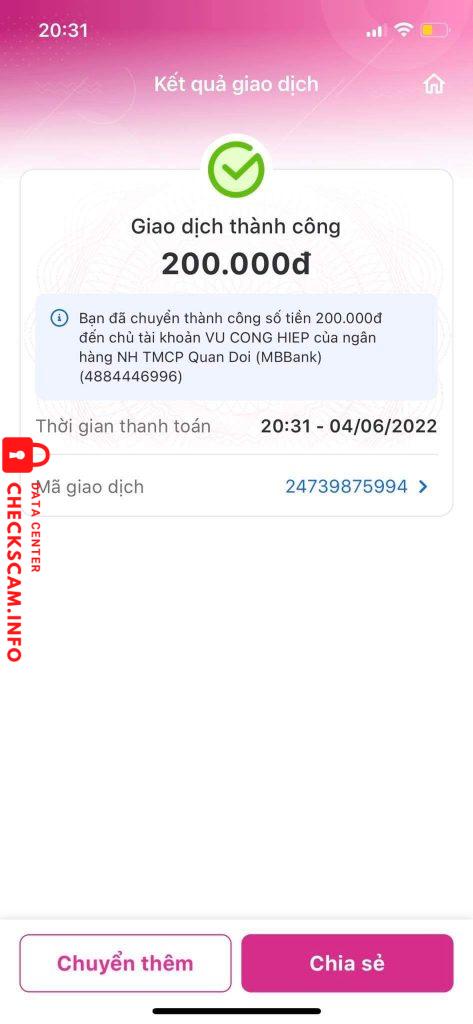Cảnh báo kẻ lừa đảo: Vũ Công Hiệp Đã báo cáo: November 16, 2024 Thông tin kẻ lừa đảo Họ và tên: Vũ Công Hiệp Cổng thanh toán: MBBANK Tài khoản thanh toán: 4884446996 Danh mục: Lừa đảo mua bán Nguồn: Checkscam Tệp bằng chứng Mô tả báo cáo lừa đảo số tiền nhỏ nhưng có thể lừa một lúc nhiều người. Bình luận Bình luận của bạn Thêm bình luận Chưa có bình luận nào. Hãy là người đầu tiên chia sẻ kinh nghiệm của bạn với kẻ lừa đảo này.